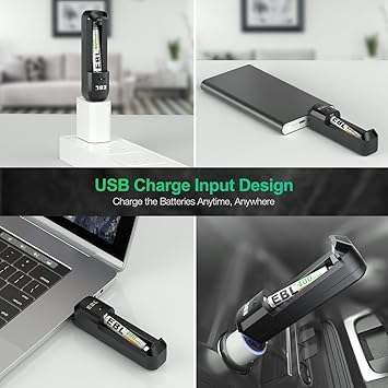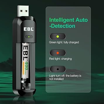 【スマート電池充電器】: 入力DC 5V/1A、出力DC 1.5V/400mA 対応タイプ:単6、単3、単4 ニッケル水素電池&ニッカド電池。高度なIC制御により、電池が完全に充電されると、自動的に充電を停止します。