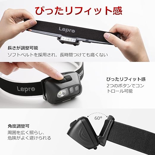 Lepro ヘッドライト 充電式 LED ヘッドランプ 防水 センサー付き 明るい ledヘッドライト 手振り【白光&赤光/5つ点灯モード/実用点灯20時間/60°角度調整可/USBケーブル付き】 夜釣り 登山 キャンプ 作業 頭につけるライト ジョギング ハイキング アウトドア 災害 停電対策 防災用 ヘッド ライト b | PCBASE