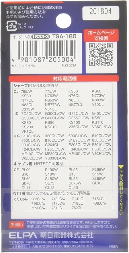 適合機種 ・シャープ:M-003 ・キヤノン:HBT500 ・NTT:電池パック-086/087 同等品