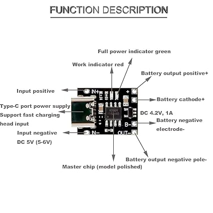 【仕様】:入力電圧範囲:5~6V;出力電圧:4.2V;充電電流:1A;サイズ:14×18×5mm(Cポートメスシートの突起は約1.5mm)。