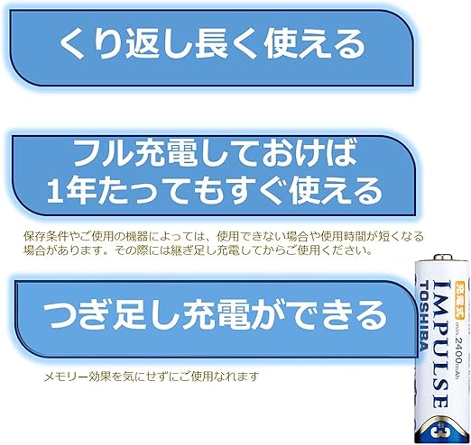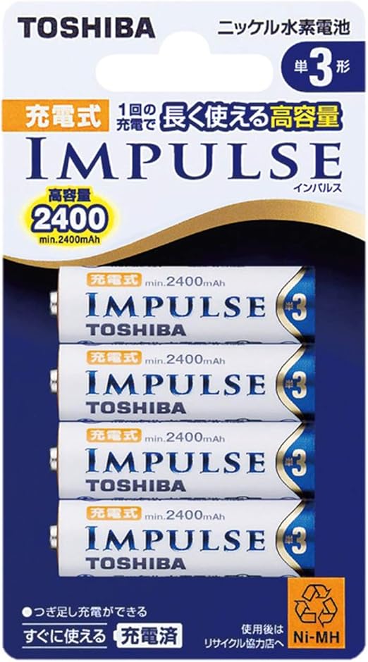 TOSHIBA ニッケル水素電池 充電式IMPULSE 高容量タイプ 単3形充電池(min.2,400mAh) 4本 TNH-3A 4P a | PCBASE