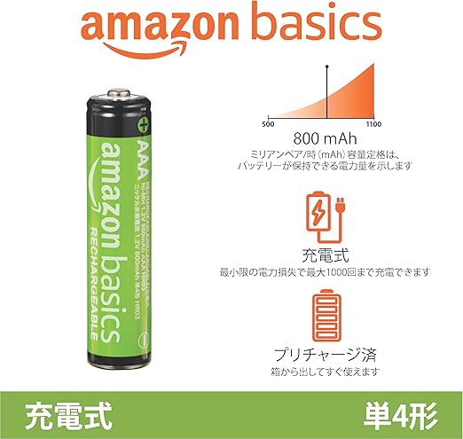 デジカメ/リモコン等に使える 単4形充電池 (800fmAh) 4本パック