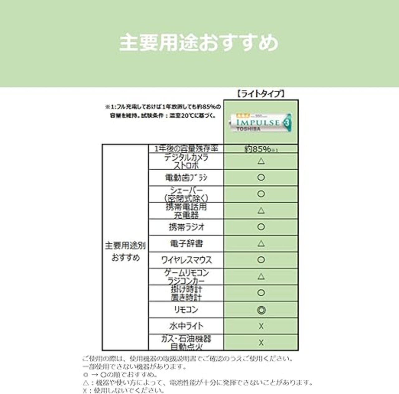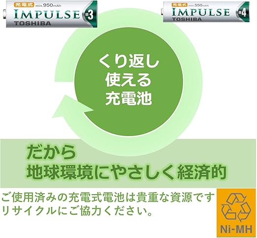TOSHIBA ニッケル水素電池 充電式IMPULSE ライトタイプ 単3形充電池(min.950mAh) 2本 TNH-3LE2P a