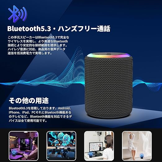 Bluetoothスピーカー ワイヤレススピーカー 小型 HIFI音質 大音量 ポータブルスピーカー【2025年の新アップグレード】 Bluetooth5.3 LEDライト付き Type-C充電 IPX7防水 AUX対応 マイク内蔵/TWS機能/TFカード対応/2台ペアリング お風呂 スマホ PC 車用 a | PCBASE