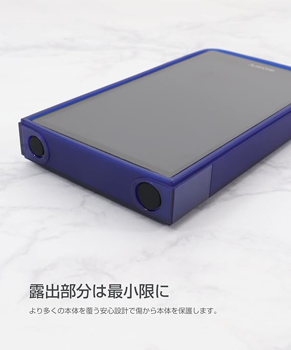 5面全てを覆うマット加工されたソフトケースとSIAAの抗菌・抗ウイルス加工を取得した安心安全な耐衝撃吸収フルスペック/高光沢フィルムをセットにしたオンライン限定モデル。ケースのカラーバリエーションは、マットブルー、マットブラック。傷からウォークマン ZX700全体を保護します。ケースを装着したままでも充電、及び「microSDメモリーカードスロット」にアクセス可能です。