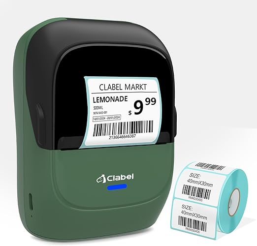 サーマルラベルプリンター: BPAフリーのダイレクトサーマルテクノロジー。 CLABEL 221B ラベルメーカーマシン、テープ付き、40x30 mm。 221Bラベルプリンターはラベル幅20~50mmに対応しています。 重量: 293g。 AndroidやIOSなどのスマートデバイスと互換性があり、ドライバーをインストールする手間がなく、接続も簡単です。タブレットには対応していません