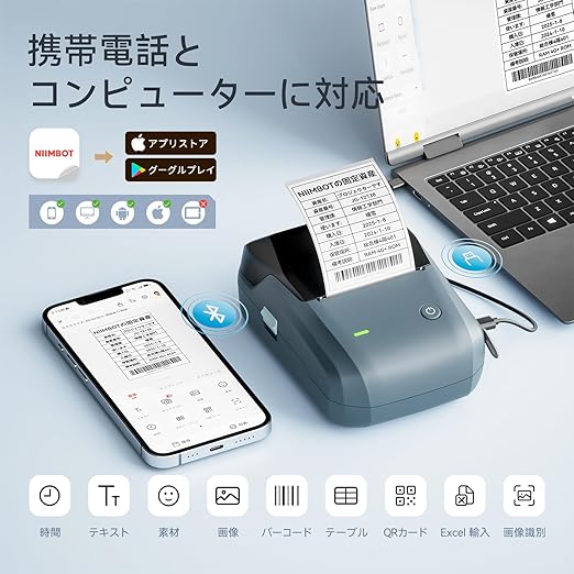 【強力な機能】様々なテキスト、数字、グラフィック、記号、ロゴ、バーコード、QR コードなどの印刷をサポートします。