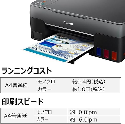 A4インクコスト:モノクロ約0.4円、カラー約0.9円