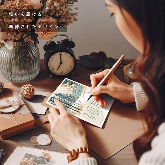 【こだわり全面デザイン】:はがき全面に施されたこだわり