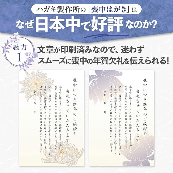 [ハガキ製作所] 喪中はがき 20枚 年賀状じまい 私製ハガキ インクジェット 文章 例 喪中ハガキ 印刷済み 喪中 はがき ハガキ 葉書 無地 絵柄のみ 切手 無し 年賀状 年賀欠礼 (G.(喪中) 菊 年賀状じまい AL107) a | PCBASE