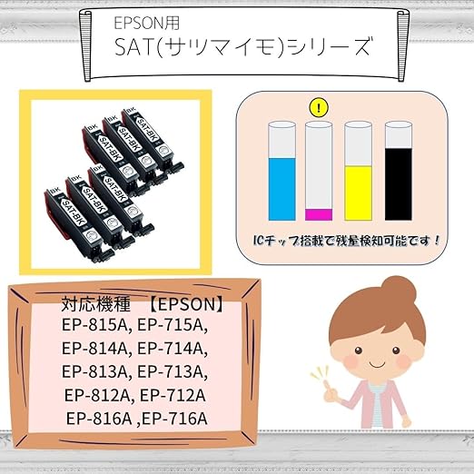 EPSON用 SAT-BK 6本セット エプソン 互換インク インクカートリッジ 対応機種 EP-712A EP-713A EP-714A EP-715A EP-716A EP-812A EP-813A EP-814A EP-815A EP-816A ICチップ搭載 EPSON インク エプソン サツマイモ a | PCBASE