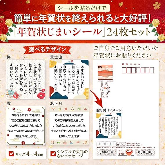 [シール製作所 匠] 年賀状じまい シール 48枚 年賀状 最後 文章 お年玉付き 年賀状 終わり 挨拶 文例 年賀状 やめる 例文 官製はがき 私製はがき 寒中見舞い 2024 2025 2026 (1.梅 AK009, 48枚) a | PCBASE