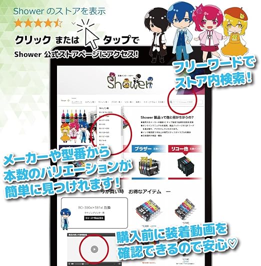 Shower インクカートリッジ ブラザー 用 LC12 (BK/C/M/Y) 4色×2セット 互換インク QR/WEB説明あり 【Green Shower製】は国内梱包検品を実施【安心一年パック】 LC12-4PK LC12BK LC12C LC12M LC12Y a | PCBASE