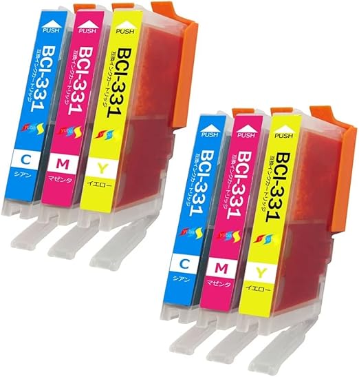 セット内容: キヤノンCanon 用 BCI-331XL 互換インクカートリッジ 大容量 6本セット増量シアン ( BCI-331XLC 互換)/ 増量マゼンタ ( BCI-331XLM 互換)/ 増量イエロー ( BCI-331XLY 互換)各2本