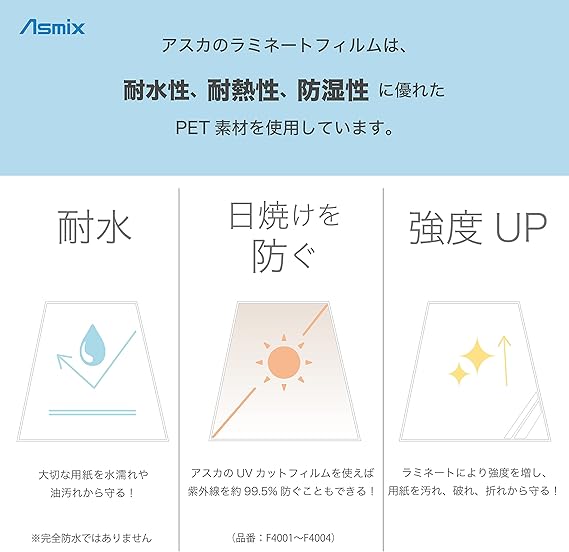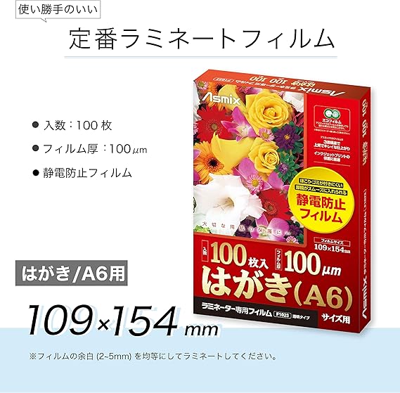 ゴミやほこりがつきにくいラミネーター専用フィルム