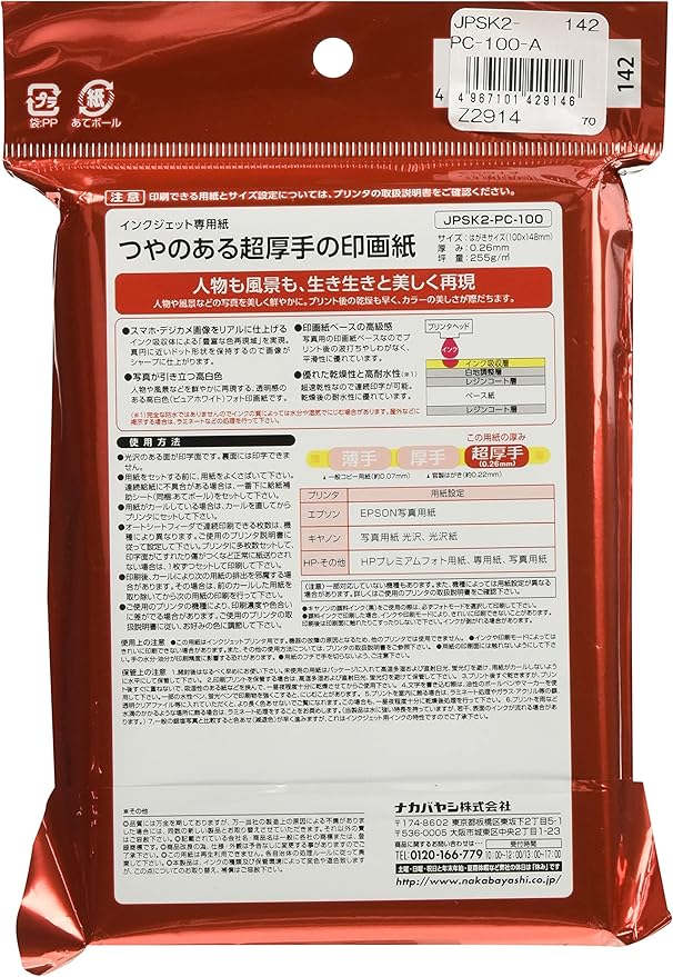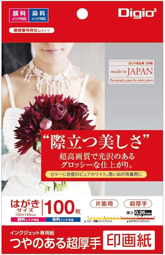 Digio2 写真用紙 印画紙 つやのある超厚手 強光沢 はがきサイズ 100枚 Z2914 a