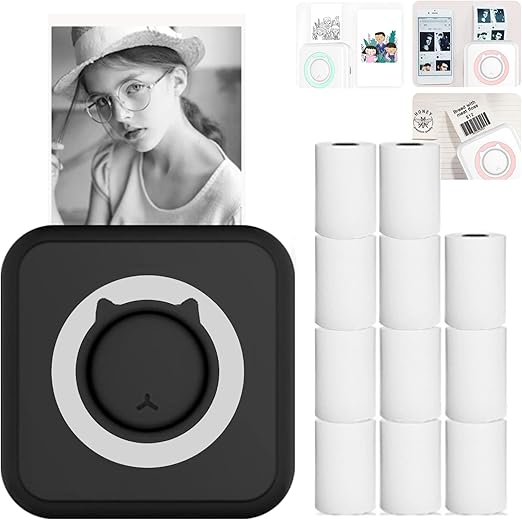 フォトプリンター,オールインワンフォトプリンター 多機能ポータブルプリンター ワイヤレスインスタントミニプリンター スマートフォン用BT接続をサポート 紙ロール11本付き 57mm iOS Androidと互換性あり a | PCBASE