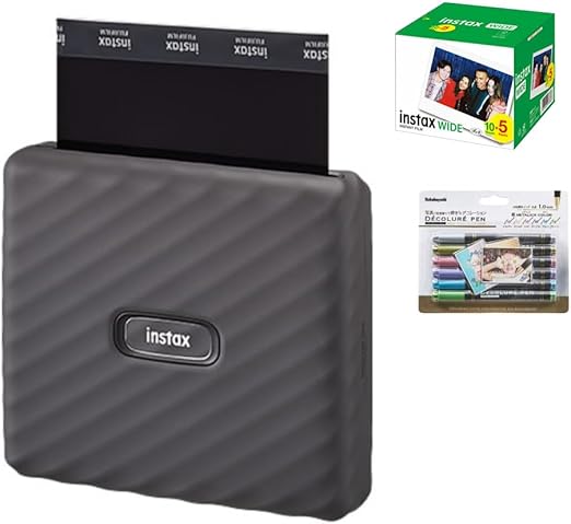 チェキ instax Link WIDE (モカグレイ) ワイド用フィルム50枚 デコペン付 3点セット a