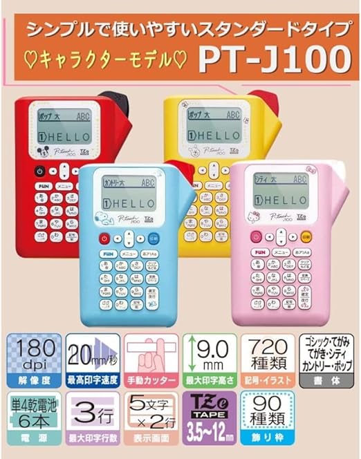 brother ブラザー ラベルプリンター ピータッチ PT-J100MCR キャラクターモデル レッド&テープ(TZe-221/TZe-231/TZe-DP31/TZe-DB31/TZe-MW31)&単四電池8本 a | PCBASE