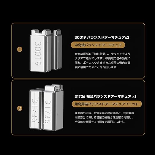 【2025最強のKZハイブリッドイヤホン】KZ ZA12はKZ イヤホン最強のハイブリッドイヤホンとして、10mmスーパーリニアダイナミックドライバーユニット+8mm 高性能ダイナミックドライバー、31736デュアルアレイバランスドアーマチュア*2、30019カスタマイズバランスドアーマチュア*2の組み合わせを採用しています。HiFiレベルをはるかに超える音質体験をもたらし、プロのミュージシャンや、音質に対する要求が高いオーディオ愛好家のニーズを満たします。一方、バランスドアーマチュアドライバー