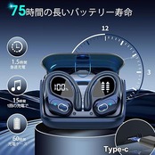 イヤホン bluetooth 耳掛け ワイヤレスイヤホン 最大75時間再生 Hi-Fi音質 Bluetooth5.4 瞬時接続 AAC対応【2025年新モデル、完全ワイヤレス、ENCノイズキャンセリングマイク搭載】 ヘッドホン IP7防水 LEDディスプレイ Type-C 急速充電 適用 iPhone/Android ビジネス/WEB会議/通勤/通学/スポーツ a | PCBASE