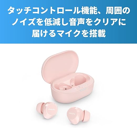 PHILIPS(フィリップス) TAT1209 ワイヤレスイヤホン ノイズリダクションマイク付き コンパクト ポケットサイズ バスブースト機能搭載 最大6時間連続再生 防水IPX4準拠 メーカー保証1年間 (ピンク) a | PCBASE
