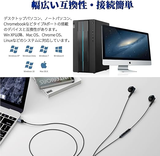 イヤホン マイク USB 有線 ヘッドセット 【2.3m】 マイク付きイヤホン 通話可能 音量調節 HIFI音質 テレワーク WEB会議 Zoom パソコン用 ゲーミング イヤホン USB-A ポート搭載のデスクトップ、コンピュータ、PC、ラップトップなどに対応 (ブラック) a | PCBASE