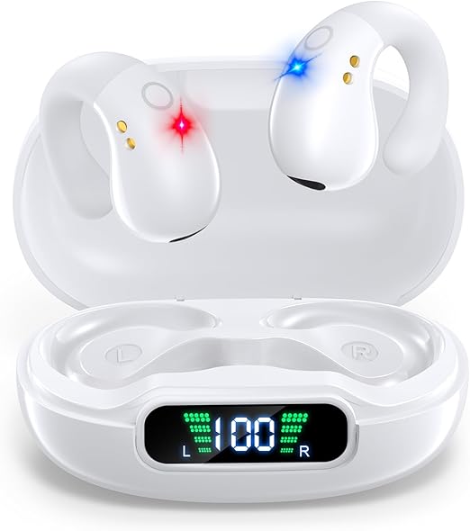 【新時流 イヤホン bluetooth】イヤーカフイヤホン OWS 空気伝導 耳挟み式 bluetooth 塞がない ワイヤレス 骨伝導の革新 耳挟み式 オープンイヤー 音漏れ抑制 耳を塞がない Bluetooth5.3 数字LEDディスプレイ 瞬時接続 誤操作防止 耳掛け式 耳を飾るアクセサリー 超軽量 快適装着感 圧迫感ゼロ白 a | PCBASE