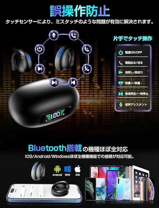 イヤーカフイヤホン【新時流 bluetooth】 OWS 空気伝導 耳挟み式 bluetooth 塞がない ワイヤレスイヤホン 骨伝導の革新 耳挟み式 オープンイヤー 音漏れ抑制 耳を塞がないイヤホン Bluetooth5.3 数字LEDディスプレイ 瞬時接続 誤操作防止 耳掛け式 耳を飾るアクセサリー 超軽量 快適装着感 圧迫感ゼロ a | PCBASE