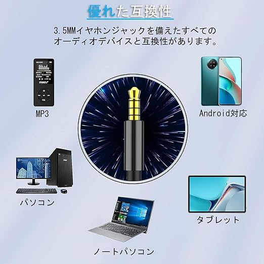**独立したマイクとイヤホンプラグ**:マイクとイヤホン用に独立したプラグを装備。ゲームやライブ配信でのコミュニケーションや音声収録に最適で、信号伝送の安定性を高めます。