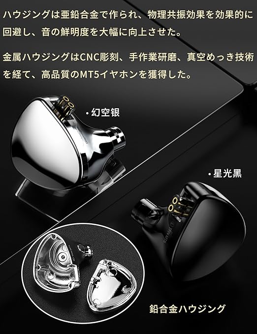TRN MT5 イヤモニ 有線 イヤホン LCP振動板 N52デュアルチャンバー ダイナミックドライバ HiFi モニターイヤホン ハイレゾ イヤフォン 金属ハウジング ISO&Android対応 QDC脱着式ケーブル 3.5mmジャック マイク無し (ブラック) a | PCBASE