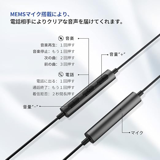TYPE C有線イヤホン【グレードアップ版ダイナミック型ドライバー搭載&高感度MEMSマイク内蔵】 PCイヤホン、 閉塞感無し、長時間装着快適、マイク/リモコン付き 「ブラック」 a | PCBASE