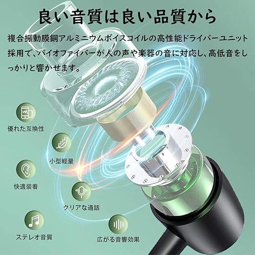 2025新発品 イヤホン 有線イヤホン 3.5mmジャック HIFI音質 音量調整 重低音 ノイズキャンセリング マイク付き 通話可能 ハイレゾ クリア通話 音量調節 ステレオイヤフォン スマホ有線イヤホン (緑) a | PCBASE