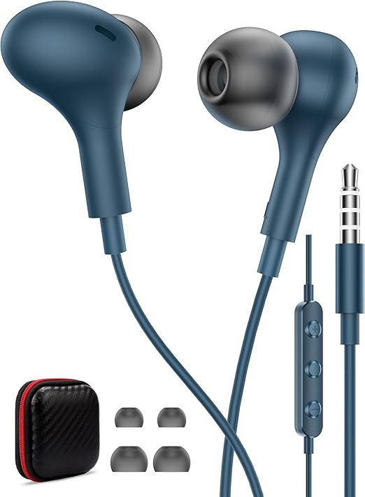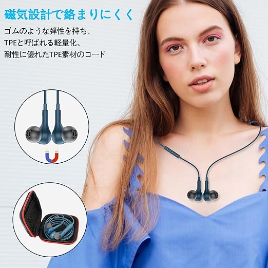 イヤホン 有線イヤホン マイク リモコン付き 対応iPhone/iPad iPod/PC/Android/PS4/PS5 パソコン用 3.5mmイヤホンジャック重低音 磁気設計 音量調節 通話/ゲーミング/ミュージック/zoom会議/テレワーク/通勤通学用 イヤフォン ヘッドホン 軽量快適 可愛い ブルー a | PCBASE