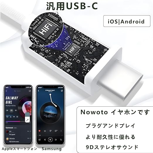 タイプc イヤホン 有線 【2025音質強化版】 USB type-c 有線 イヤホン 通話可能 音量調節 騒音低減 Type Cインターフェース使用 絡み防止 人間工学 快適な装着感 小型·軽量·防汗 Phone/Android/ios/Xperia/Padなど各機種対応 収納袋付き a | PCBASE