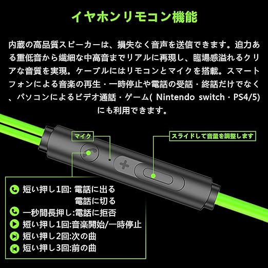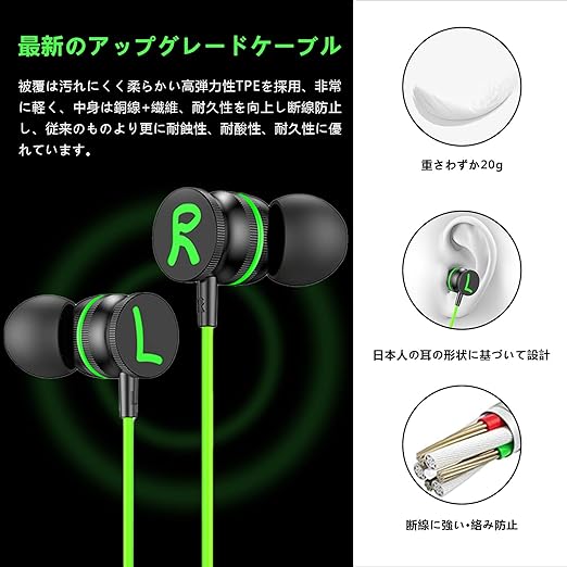 【2025新発品】ゲーミングイヤホン マイク付きイヤホン 有線 磁気吸着設計 ゲーム イヤホン ハイレゾ パソコン用 軽量 カナル型 イヤホン 3.5mm pc/スマートフォン/タブレットノートパソコンゲーム 適用 (グリーン) a | PCBASE