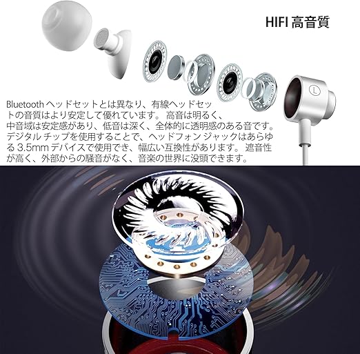 「快適さと遮音性を備えた高音質イヤホン」遮音性と快適性を備えたイヤホン。イヤホン 有線 付属の耳栓には大小2つのサイズがあり、耳の大きさに合わせ