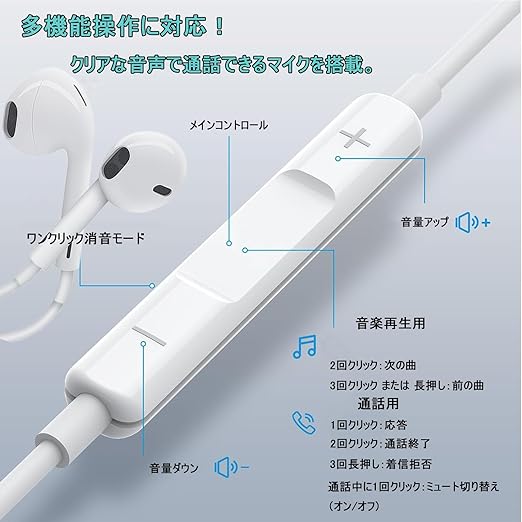 【マイク搭載リモコンでテレワークや会議に最適】ケーブルにはリモコンと高性能マイクを内蔵し、スマートフォンでの通話や音楽操作はもちろん