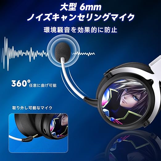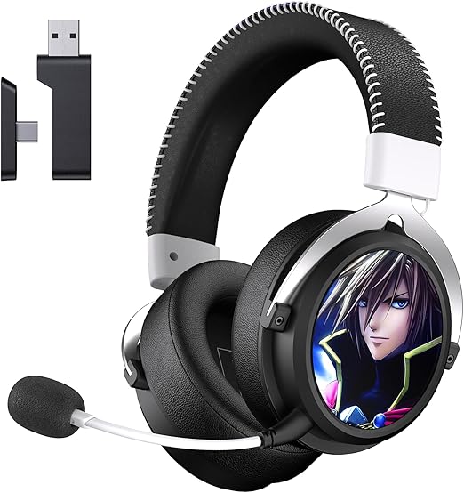 ゲーミングヘッドセット ワイヤレスヘッドホン 【4WAY接続&超低遅延】 PS5 ヘッドセット 有線 Bluetooth 5.3 / 2.4GHz 無線 両対応 ゲーミングヘッドホン マイク付き ノイズキャンセリング 70時間再生 USB ヘッドセット PS4 / PC/Switch/Xbox 対応 重低音 50mmドライバー コードギアス ルルーシュ 限定デザイン Spark01 a | PCBASE