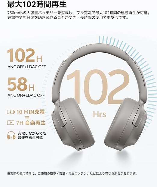 【デュアルドライバーで極上のサウンド体験を】40mmの低音ドライバーと13mmの高音ドライバーによるプロ仕様のデュアルドライバー構成を採用。力強い低音から透き通る高音まで、滑らかに伸びるサウンドで音のニュアンスを余すことなく再現します。さらに、Hi-Res Audio/Hi-Res Wireless Audio認証取得により、最大40kHzの高周波数帯域で高解像度の音楽再生を実現。LDACコーデック対応で、通常の約3倍の情報量を伝送し、細部まで原音を忠実に再現。クリアで臨場感あふれる音楽体験をお