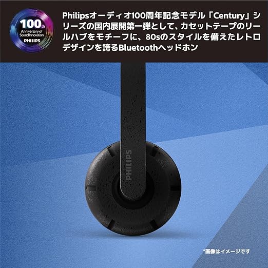 Philipsオーディオ100周年記念モデル。カセットテープのリールハブをモチーフに、80sのスタイルを備えたレトロデザインを誇るBluetoothワイヤレスヘッドホン