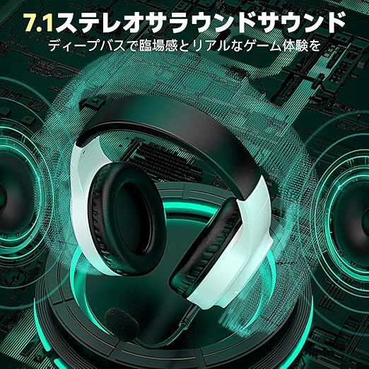 ゲーミングヘッドセット ワイヤレス 2.4G/Bluetooth5.3/有線 PS5 無線ヘッドセット ノイズキャンセリング マイク付き <20ms超低遅延 7.1ステレオサウンド 重低音強化 60H連続再生 ヘッドホン PS4 PC Switch スマホ Xbox対応 (ホワイト) a | PCBASE