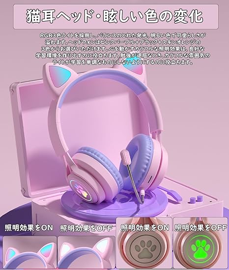 ワイヤレスヘッドフォン bluetooth5.4 子供用 ワイヤレスヘッドフォン RGBライトキラキラした オーバーイヤーヘッドホン 有線無線両用 マイク内蔵 ハンズフリー通話 猫耳ヘッドセット 外部取り外し可能マイク付き アルタイムイヤニモ 暗記と学習に最適//40mmドライバーhifi高音质/サイズ調整可 大人子供兼用/ゲーム機タブレット音楽用/50H音楽再生/女子学生が喜ぶプレゼント a | PCBASE