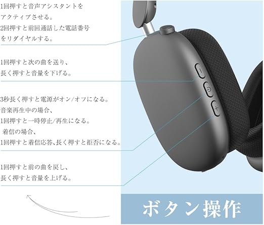 ヘッドホン Bluetooth ワイヤレスヘッドホン Bluetooth 5.4 オーバーイヤーヘッドホン 有線 無線 両用 密閉型 HIFI音質/遅延なし/100時間待受可能/軽量/折り畳み可能/マルチポイント対応/40mmドライバー/マイク内蔵/ボタン操作/ENCノイズキャンセリング/Type-C急速充電/日本語取扱説明書付属 (グレー) a | PCBASE