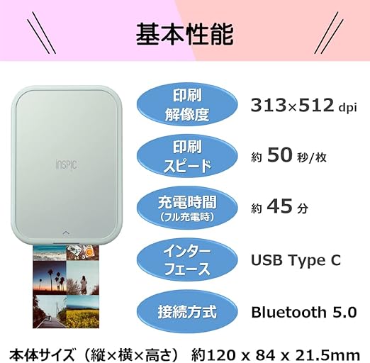 接続方法:専用スマートフォンアプリからの印刷のみ 無線通信方式:Bluetooth 5.0