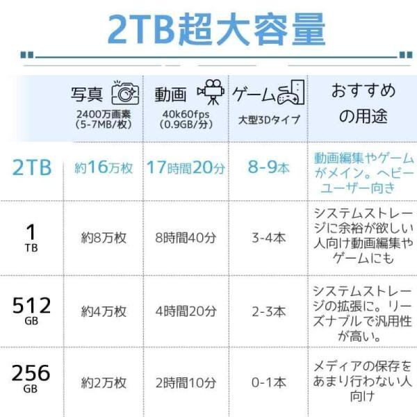 【優れた放熱性&省電力】---ssdは【長寿命】のアルミ合金素材を使用しているため、効率的な放熱性能があり、長期間使用でき、大切なデータも安心に保存できます。また、SSDではディスクもヘッドも必要ありませんので、消費電力が低くなります