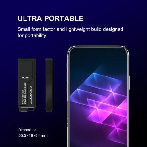 ARCANITE PLUS, 1TB 外付SSD (USBメモリ) USB 3.2 Gen2 UASP SuperSpeed+, 最大読出速度600MB/s、最大書込速度500MB/s