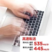 シーケンシャル読出し速度 : 最大535MB/秒、シーケンシャル書込み速度 : 最大445MB/秒