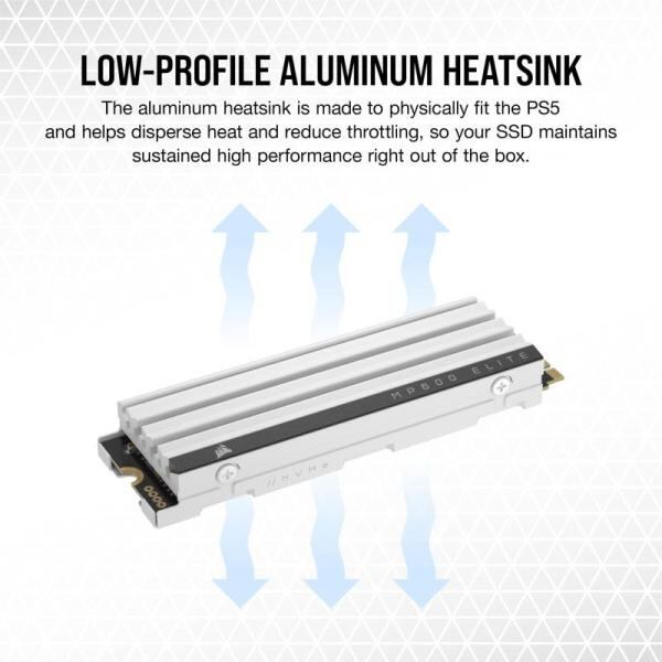 CORSAIR MP600 ELITE 1TB PCIe Gen4 x4 NVMe M.2 SSD PlayStation 5/PS5 適用 M.2 2280 フォームファクタ 薄型アルミニウム製ヒートシンク 高密度 3D TLC NAND ホワイト CSSD-F1000GBMP600ECS