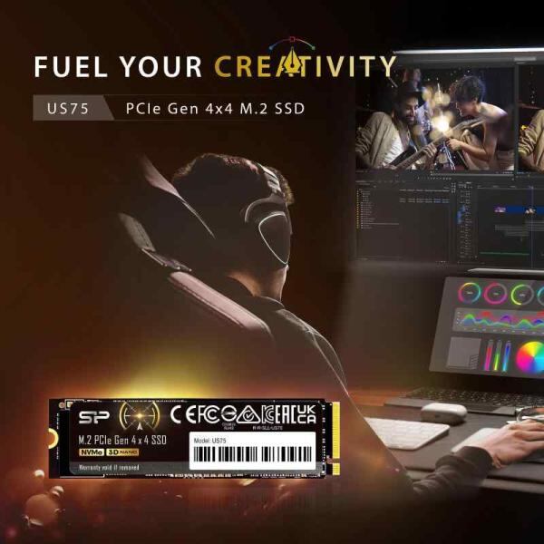 シリコンパワー 1TB US75 NVMe PCIe Gen4 M.2 2280 SSD R/W 最大7000/6000MB/s Playstation 5対応 SP01KGBP44US7505